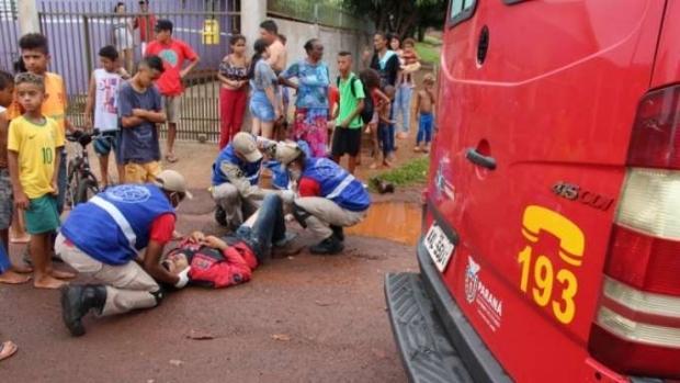 Motociclista e passageiro da moto tiveram ferimentos graves e foram para o hospital.