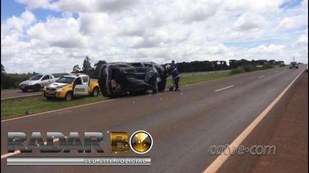 O capotamento foi registrado na BR 467, próximo ao viaduto da Rua Jorge Lacerda em Cascavel, na tarde desta quinta-feira (01). De acordo com as informações obtidas no local, o Toyota Sw4 com placas de Santa Catarina seguia sentido Toledo/Cascavel quando o motorista perdeu o controle da direção, o carro capotou, atravessando o canteiro e parando na pista contrária. A vítima Carla Regina Frederico de 42 anos, apresentou luxação em ombro direito. José Nunes Palmeira de 45 anos, teve corte em crânio e ambos foram encaminhados para atendimento hospitalar.