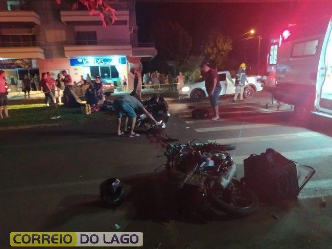 Na noite deste sábado (13), por volta das 20h30, um acidente entre duas motos foi registrado no cruzamento da Avenida Rio Grande do Sul e JM Madalozzo, no centro de Santa Helena.