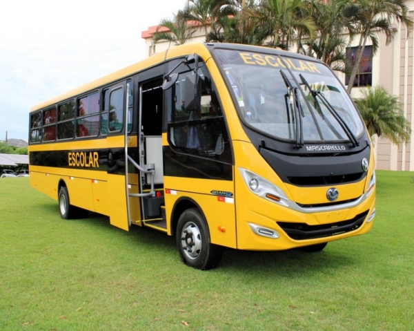 O coletivo conta com ar-condicionado e capacidade para 44 passageiros, garantindo mais conforto e segurança aos alunos que utilizam o transporte diariamente para se deslocar até as escolas.