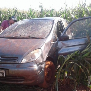 Informações coletadas por nossa equipe de reportagem, um elemento moreno que estava usando uma camisa azul invadiu a propriedade rural e roubou um veículo Citroen/Xsara Picasso ano 2004/2005 de cor cinza com placas de Toledo, na fuga sentido a Vila Nova o elemento entrou em uma lavoura de milho e capotou o Citroen.