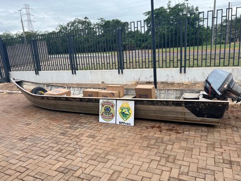 Policiais da Polícia Federal e do Batalhão de Polícia de Fronteira (BPFRON) apreenderam na noite de sexta-feira (12) uma embarcação carregada com aproximadamente 5.000 maços de cigarros contrabandeados do Paraguai. A ação aconteceu durante patrulhamento embarcado no Lago de Itaipu, em Mercedes..