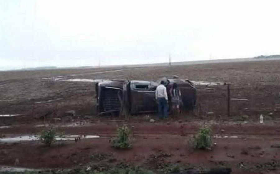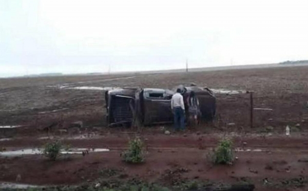 Chovia muito na tarde deste domingo (3), quando o condutor de uma camionete Ranger perdeu o controle do veículo na chamada super carretera Itaipu, colônia Kumandacai, município de Katuetê, no Paraguai.