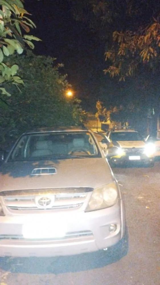 Por volta das 21h desta terça-feira (03), a Polícia Militar foi acionada devido a um roubo em uma residência localizada na Rua Elias Kail, região central de Francisco Alves. Durante o assalto, os criminosos levaram uma caminhonete Toyota Hilux SW4, de cor prata, além de sequestrarem a proprietária do veículo, seu pai e sua filha.