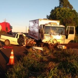 Guilherme e Jhony estavam na Saveiro que colidiu frontalmente com um caminhão com placa de Mercedes.