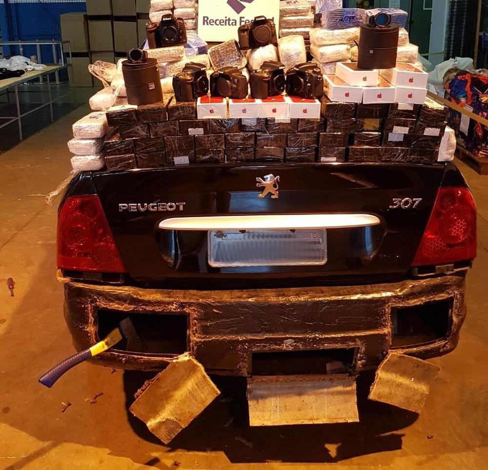 Os agentes desconfiaram do nervosismo da dupla e ao vistoriarem o veículo encontraram os celulares, dez câmeras fotográficas de uso profissional e vários cartões de memória escondidos em fundos falsos nos para-choques dianteiro e traseiro.