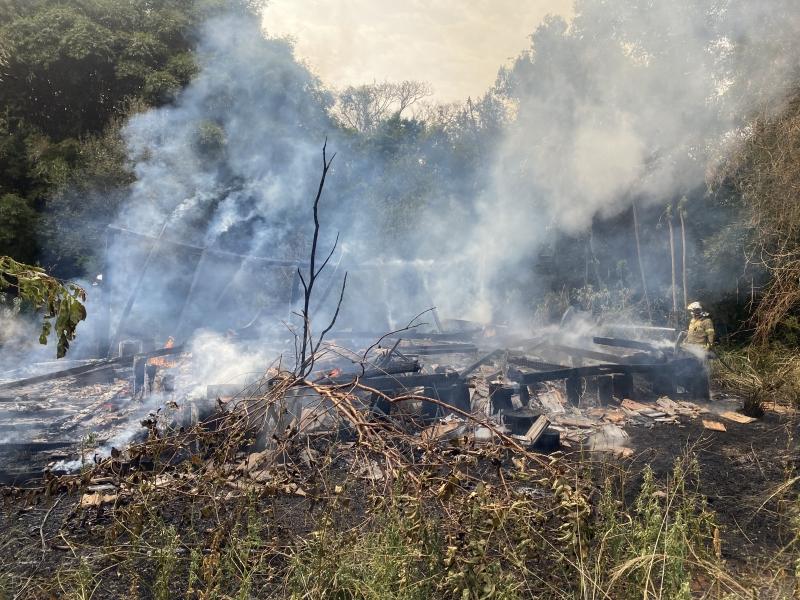 O imóvel ficou completamente destruído com o fogo. Não houve feridos e a Polícia Militar também esteve no local para registrar o ocorrido.