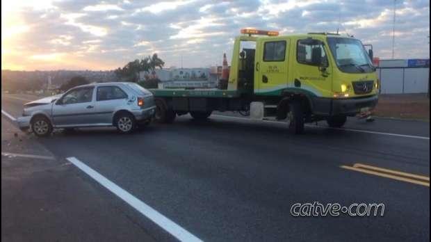 Forte batida é registrada entre carros na BR 277, em Cascavel