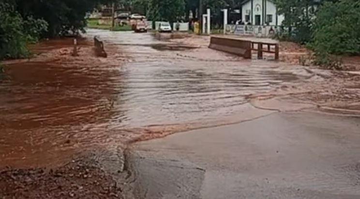 Fortes chuvas fazem rio transbordar sobre ponte, em Marechal Rondon