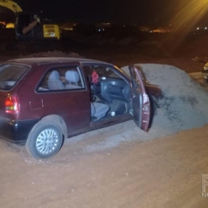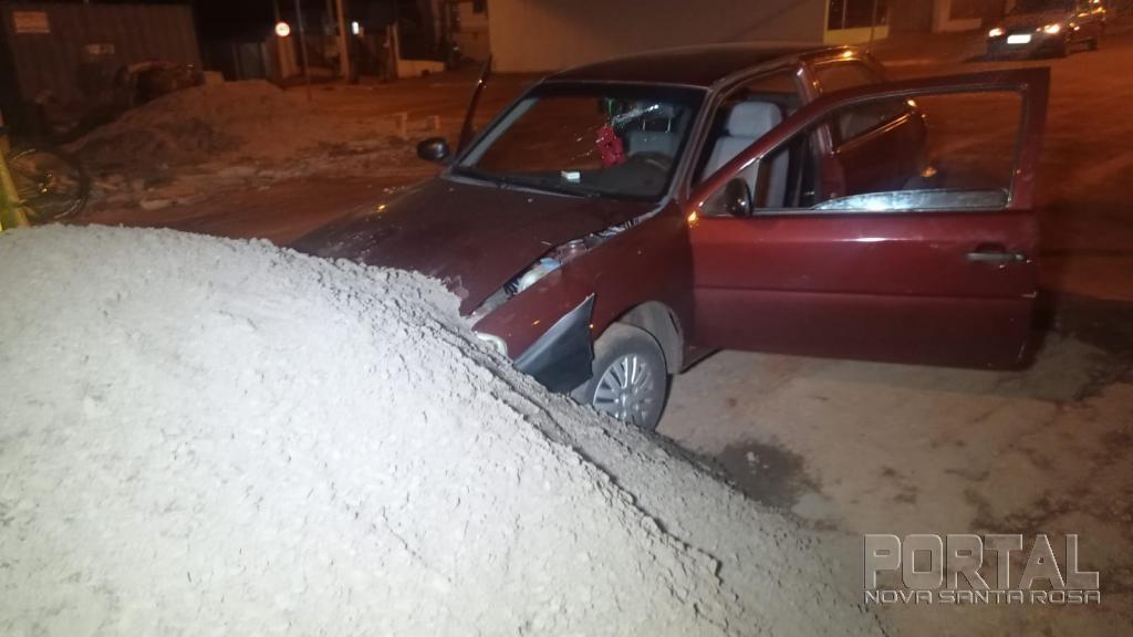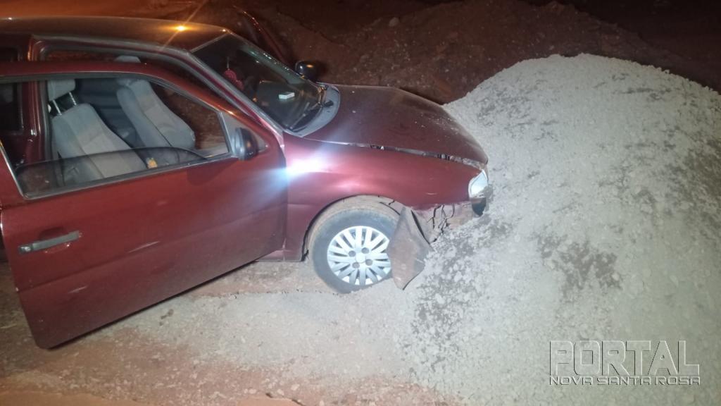 O Gol com placas Mercosul trafegava por volta das 21h30 deste sábado na rua Ângela Zanella no bairro Jardim das Orquídeas em Toledo na via que está em obras para fazer asfalto e no meio da pista tinha um monte de pedra brita e o condutor do veículo não percebeu a brita e acabou batendo nas pedras.