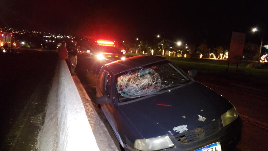 O condutor de um Volkswagen Gol acabou sofrendo um acidente de trânsito ao ter o veículo atingido por um objeto, no fim da noite de domingo (17), no perímetro urbano da rodovia BR-277, em Cascavel.