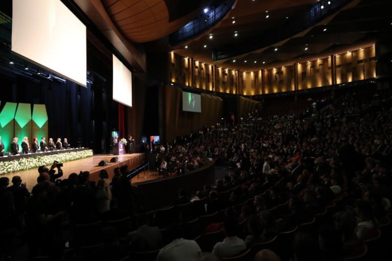 O Tribunal Regional Eleitoral do Paraná (TRE-PR), sob condução do presidente do órgão, desembargador Wellington Emanuel Coimbra de Moura, realizou nesta segunda-feira (19) a sessão solene para a diplomação dos candidatos eleitos em outubro de 2022. A entrega do diploma, que oficializa o resultado da eleição e dá direito ao eleito de assumir o mandato, foi realizada no Teatro Positivo, em Curitiba.