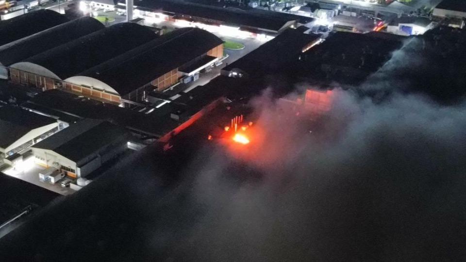 Não se sabe onde o incêndio iniciou, mas informações iniciais apontam que o setor da sala de máquinas e a área de embalagens foram atingidos.