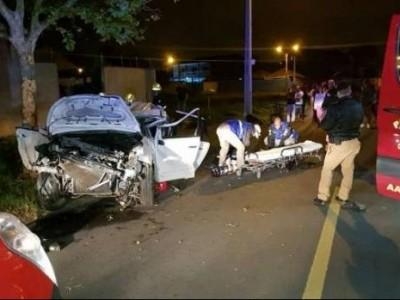 Um grave acidente registrado durante a madrugada de sexta-feira (14), na Rua Floram no Bairro Pineville deixou cinco pessoas feridas.