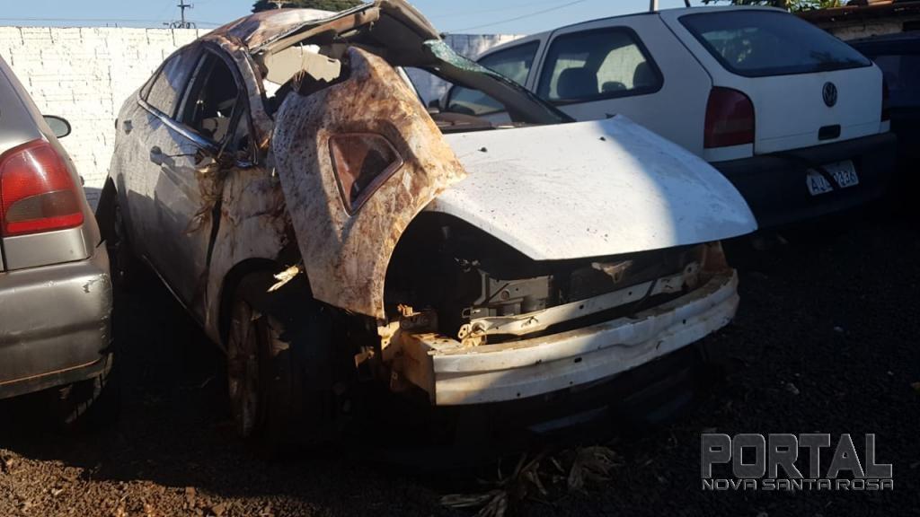 Conforme informações o acidente foi próximo a Linha Alvorada, onde um Fiesta seguia sentido São Camilo, quando em dado momento o condutor perdeu o controle da direção, capotou e atingiu um poste de energia.