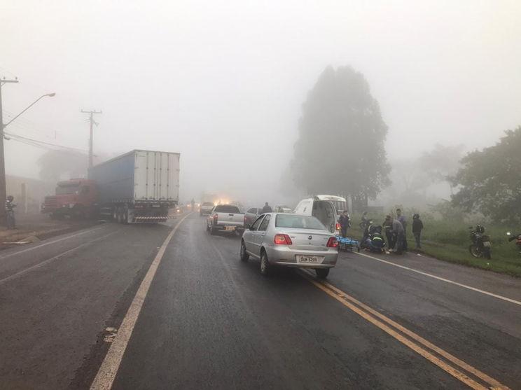 Ainda de acordo com testemunhas, o motorista o caminhão não conseguiu evitar a batida e atingiu a traseira do carro, que rodou na pista. O motociclista que seguia pela rodovia foi atingido e sofreu ferimentos moderados.