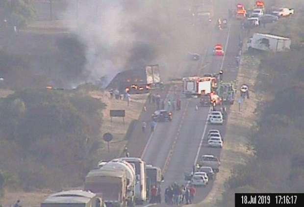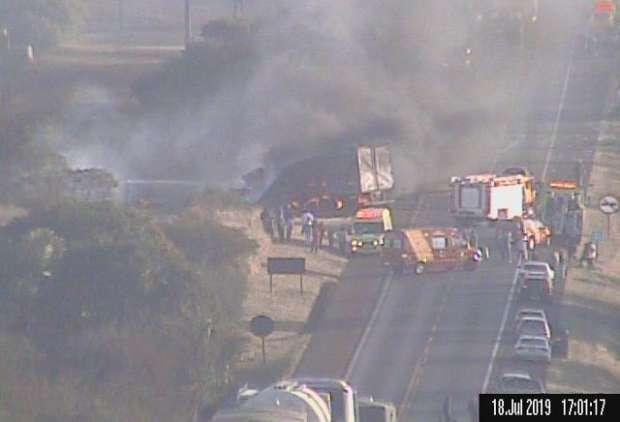 As pistas seguem interditadas após o acidente. Pelas imagens divulgadas até o momento, carros incendiaram com a batida.
