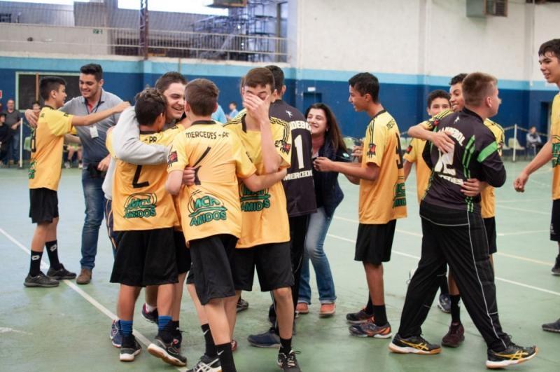A equipe de handebol masculino sub-14 de Mercedes/Colégio Estadual Leonilda Papen venceu, na manhã de sábado (20), a fase final dos 66º Jogos Escolares do Paraná em Apucarana.