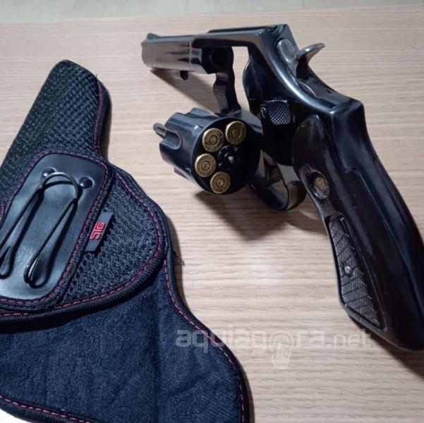 Policias então realizaram buscas no seu veículo, um Vectra, e no inteiro deste estava a arma, um revólver de calibre 28, com duas munições intactas e outras duas deflagradas.