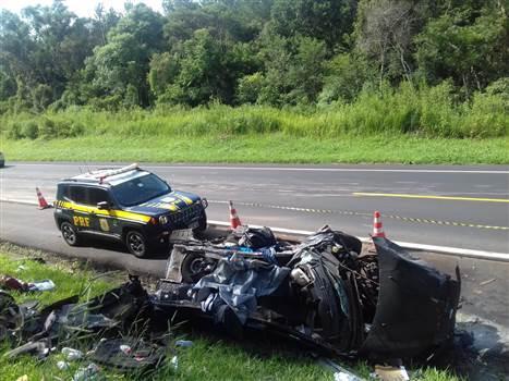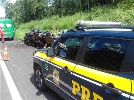 Um homem de 34 anos morreu e uma mulher ficou gravemente ferida em acidente de trânsito nesta tarde (30), na BR 277 em Fernandes Pinheiro.