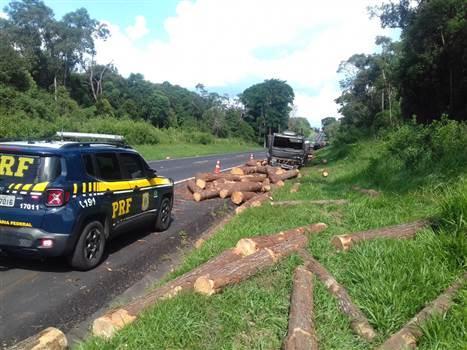 Segundo a PRF, a batida frontal entre o caminhão carregado com toras de madeira e o Fiesta com placas de Medianeira aconteceu no km 226 da rodovia.