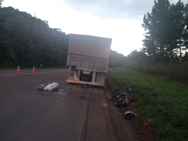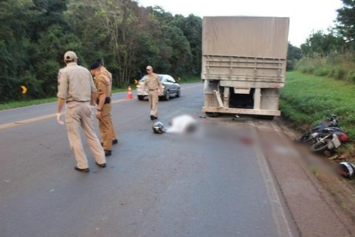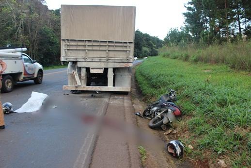 O acidente foi registrado na tarde deste sábado (18) por volta de 16h50 na rodovia PR-280 serra do Santana em Renascença,. A colisão traseira envolveu um caminhão Volvo FH que tracionava um bitrem placas de Campo Erê (SC) e uma motocicleta Honda/Biz 125, placa de Pato Branco, conduzida por Dioclézio Barbosa de Lima, 26 anos.