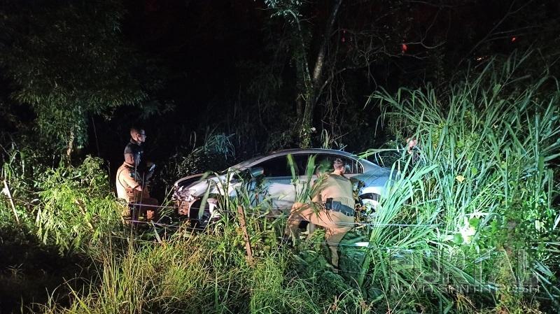 As equipes foram acionadas e durante as buscas e acompanhamento tático, os autores do roubo, estavam em alta velocidade e perderam o controle do veículo na curva do rio Santa Quitéria, girando na pista em 360º e adentrando a mata.
