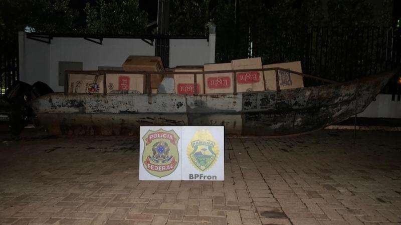 De imediato os policiais iniciaram procedimento de abordagem, sendo que, ao notar a presença policial, o piloto da embarcação tentou empreender fuga e evitar a abordagem, porém a equipe logrou êxito em interceptar embarcação carregada com aproximadamente 85 caixas de cigarros contrabandeados do Paraguai.