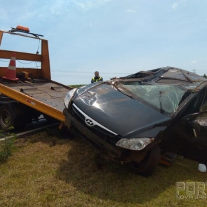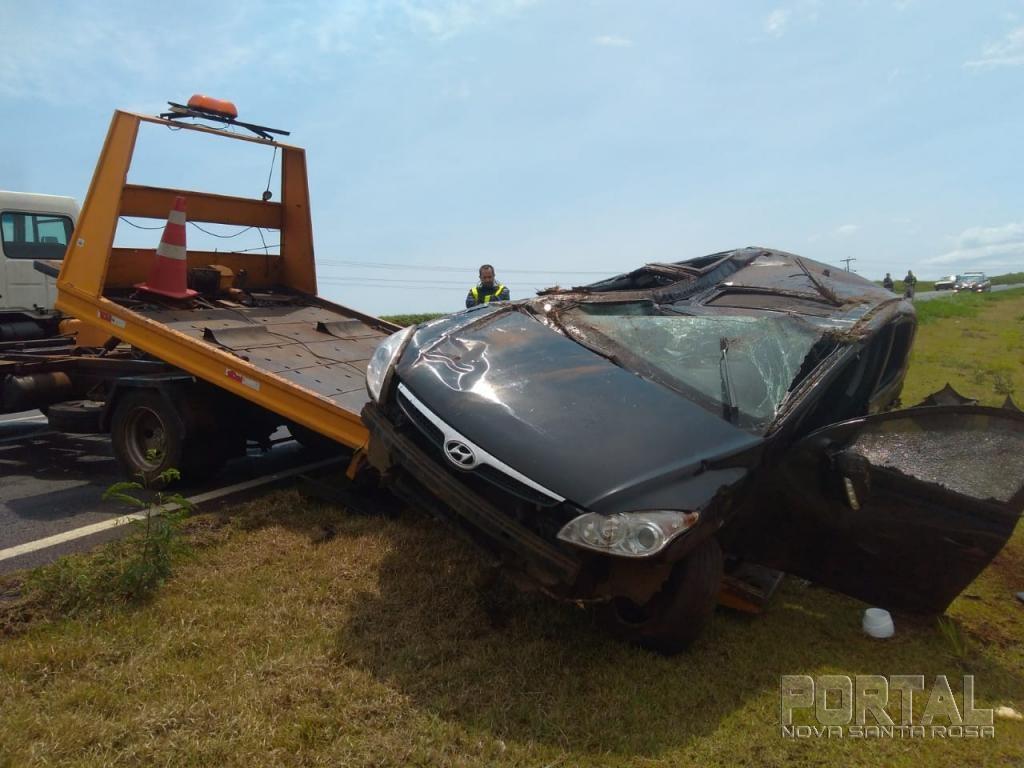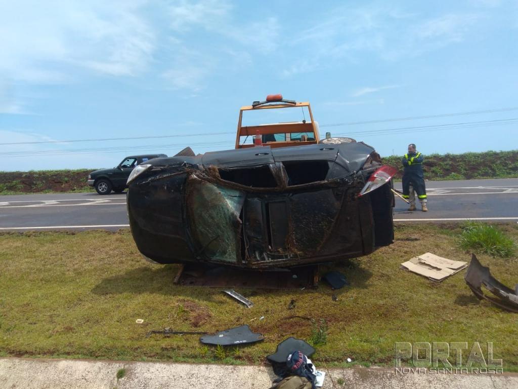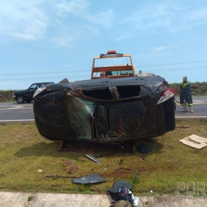 O acidente aconteceu quando o veículo trafegava no sentido Toledo a Cascavel e numa curva aberta o motorista perdeu o controle e capotou por várias vezes parando no canteiro central que divide as duas pistas, ficando com as rodas para cima.