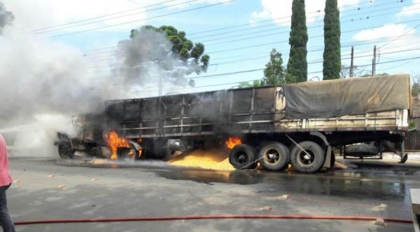 O Corpo de Bombeiros foi acionado para controlar as chamas e o motorista do veículo recusou encaminhamento para o hospital. Não há informações sobre o que teria causado o incêndio.