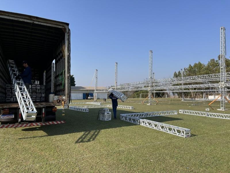 Nesta segunda-feira (2), começou a montagem das estruturas no Clube Grêmio, onde ocorrerá a Festa de 32 anos de Mercedes, programada para a próxima semana. No local também estão sendo construídas novas estufas para assar os mais de 150 costelões recheados.