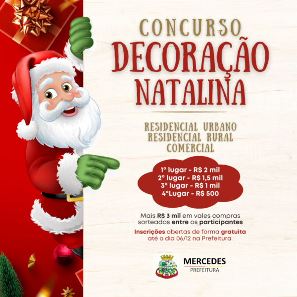 Com o intuito de enriquecer o espírito natalino em Mercedes, incentivando os residentes e empresários a decorarem suas casas e estabelecimentos com luzes e enfeites característicos da época, a Prefeitura lançou as inscrições para o Concurso de Ornamentação Natalina.