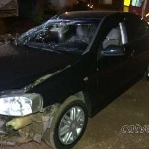 Segundo informações do pai do rapaz o jovem capotou o veículo em outro local e retornou para casa com um ferimento na cabeça e o carro totalmente destruído.