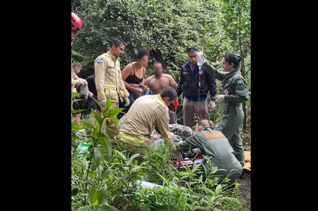 As equipes foram acionadas por volta das 12h20 informando que a vítima, o marido e um grupo de amigos estavam finalizando uma trilha próxima à queda, quando a jovem escorregou e sofreu uma queda de aproximadamente 8m.