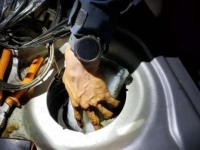 A equipe abordou um Renault Logan com placas do Rio de Janeiro, com dois ocupantes de 20 e 21 anos, ambos cariocas. Diante do nervosismo apresentado, os agentes decidiram por fazer uma inspeção no automóvel e encontraram dentro do tanque de combustível um pacote com cocaína que pesou 600 gramas.