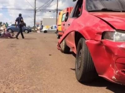 Batida aconteceu no cruzamento das Ruas Assunção e São Paulo, entre um Chevrolet Celta e uma Honda Biz. Há um semáforo no cruzamento.