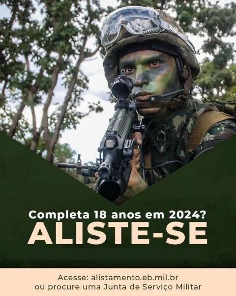 A Junta de Serviço Militar de Marechal Rondon alerta os jovens do sexo masculino, nascidos em 2006, que já completaram ou que completam 18 anos até 31 de dezembro, residentes no município, para que façam o alistamento militar.