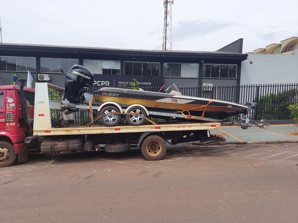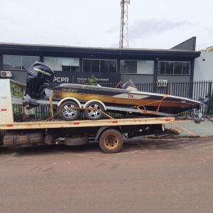 Um homem foi preso e contou que o barco foi furtado poucas horas antes em uma empresa na região central da cidade de Toledo, na empresa, o muro do local foi quebrado.