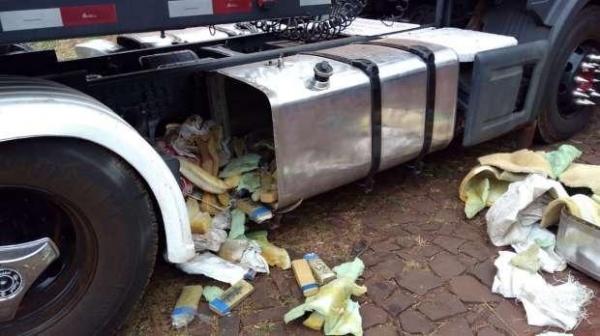 As equipes realizavam fiscalização no porto de Santa Helena quando encontraram a droga escondida no tanque de combustíveis de uma carreta. O proprietário do veículo não foi localizado.