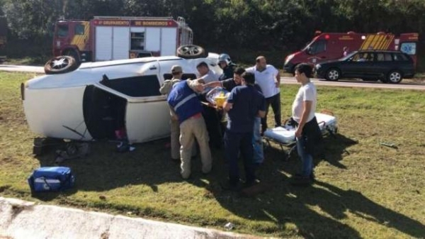 Duas pessoas ficaram feridas, entre elas uma criança de cinco anos, vítimas de capotamento na BR 467, próximo ao Distrito de Sede Alvorada, no início da tarde de sexta-feira (14), em Cascavel.