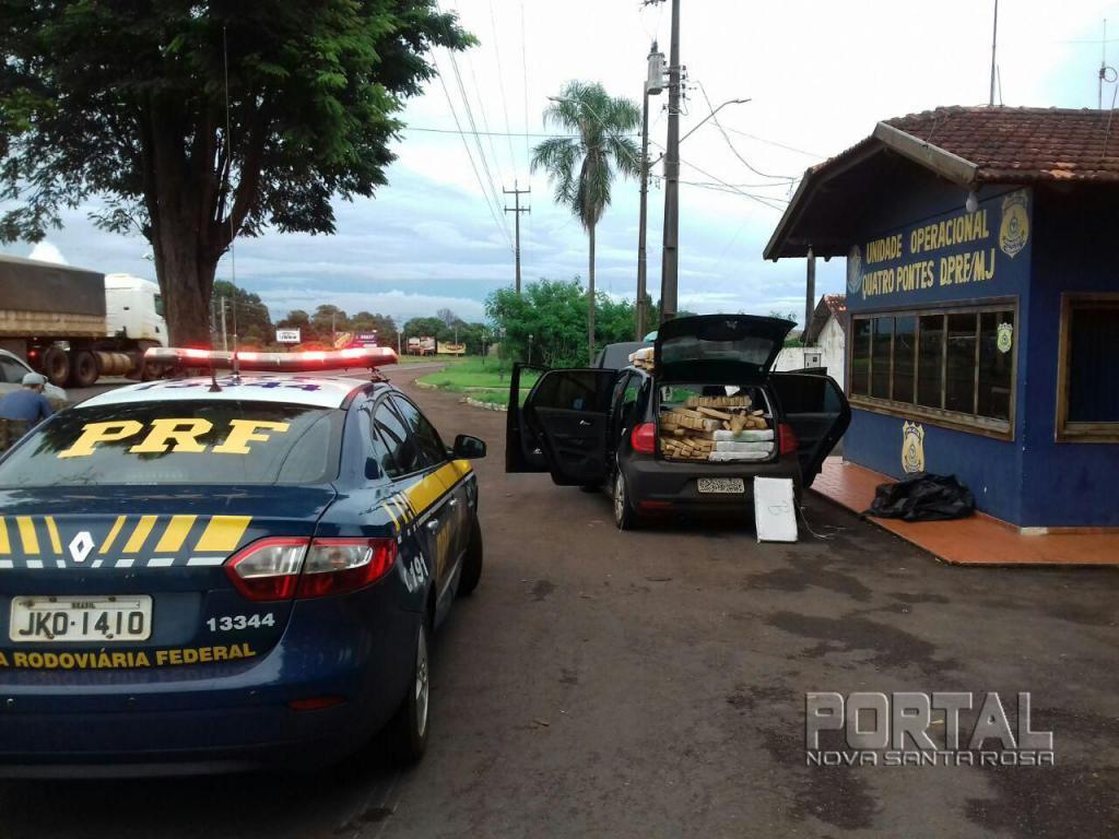 A droga era transportada em um automóvel Volkswagen Fox, que transitava pela BR-163.