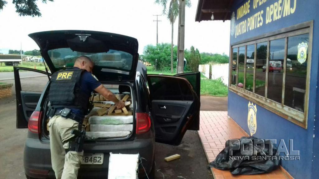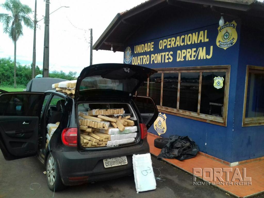 A droga estava no porta-malas e sobre os bancos. Preso em flagrante, o motorista, um homem de 27 anos de idade, disse que saiu de Ponta Porã (MS) eu que levaria a carga ilícita para Cascavel.