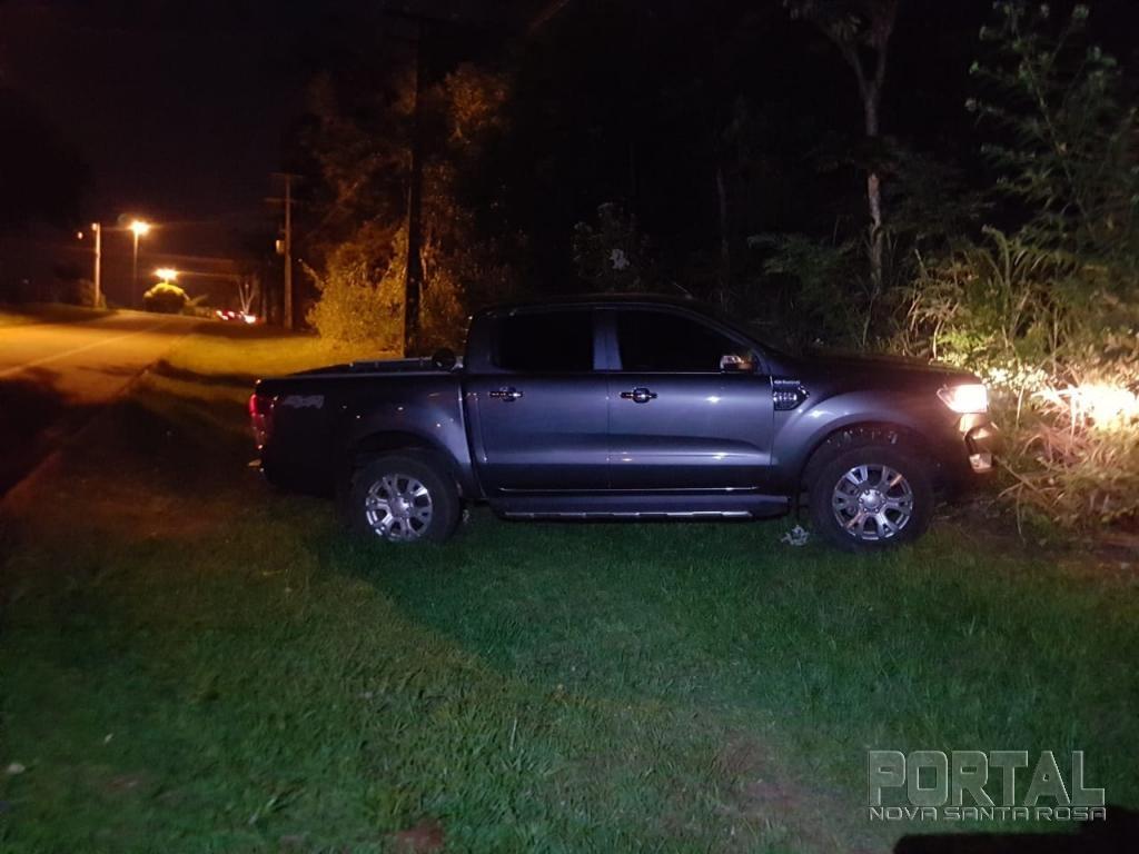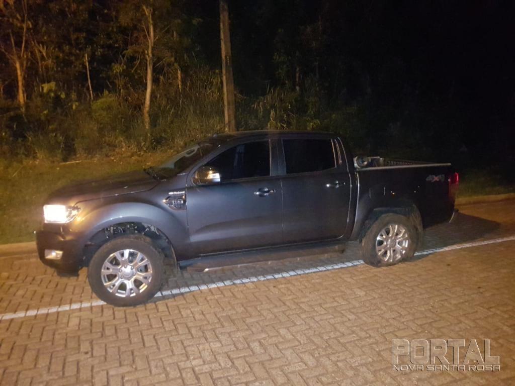 Pouco tempo depois do assalto, a PM de Guaira fazia patrulhamento quando se deparou com a camionete roubada em Quatro Pontes.