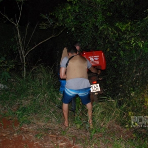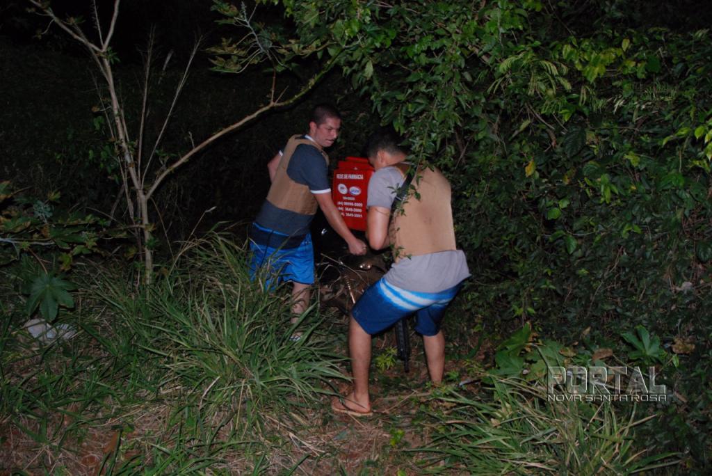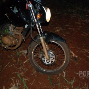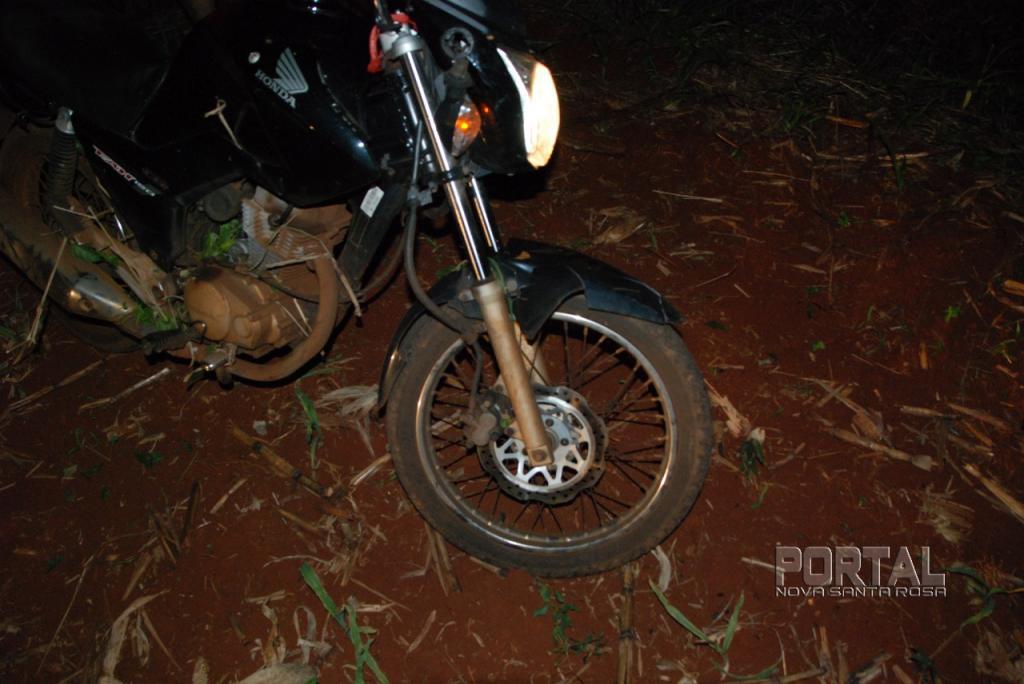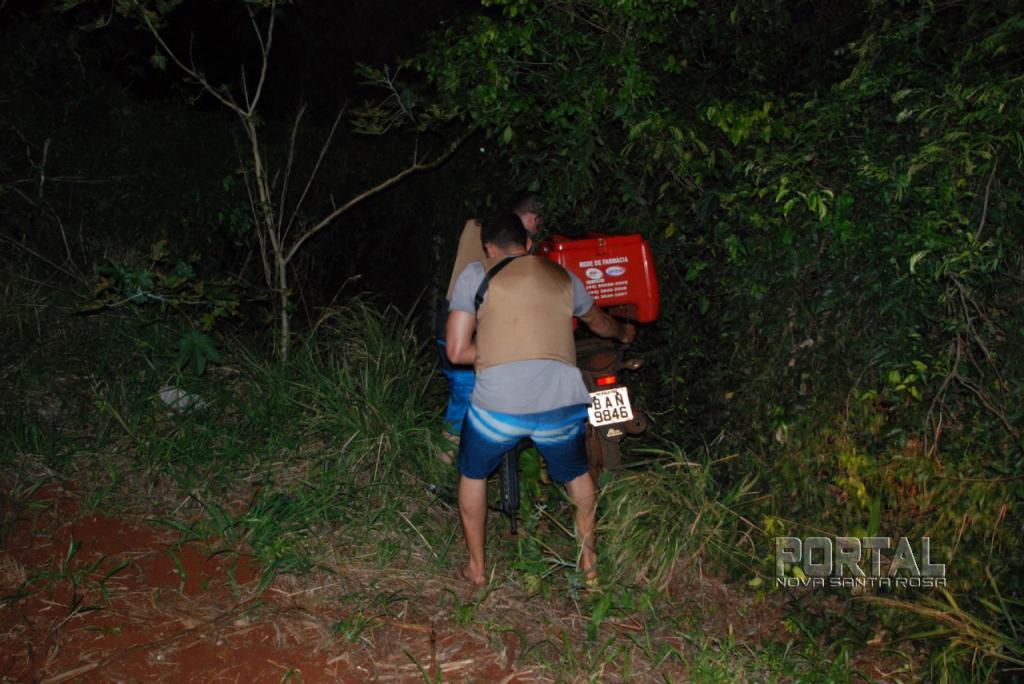 Os policiais militares realizaram buscas no intuito de localizar os marginais, quando no Bairro Pôr do Sol avistaram os dois indivíduos com a moto roubada na farmácia, na tentativa de abordagem os elementos empreenderam fuga sentido a Terra Roxa.