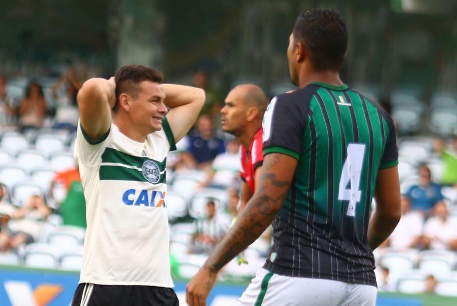 As chances de gol para o Coxa tornaram-se escassas e os visitantes ganharam campo. Primeiro, aos 13, levaram perigo em chute da entrada da área. Aos 23, obrigaram o goleiro Rafael Martins a fazer duas grandes defesas em sequência. E um minuto depois, no primeiro escanteio do time, abriram o placar em cabeceio de Alex Fraga, ex-Atlético.