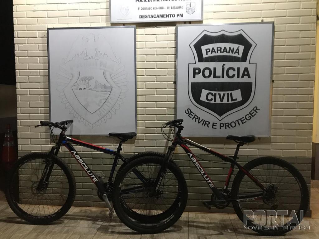 Por volta das 22h00 da noite desta terça-feira (10), a PM foi informada por uma nova-santa-rosense que relatou a equipe policial que seu filho havia deixado sua bicicleta, uma Absolute de cor preta, aro 29, em frente ao teatro municipal por volta das 19h30, e ao sair do local, por volta das 21h30 percebeu que a bike não estava no local deixado.