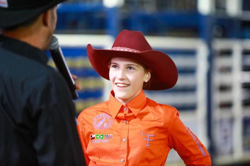 A mercedense Eduarda Heinen H., a Duda, de apenas 13 anos, foi a campeã Mirin do Rodeio de Três Tambores, na Expogoio.
