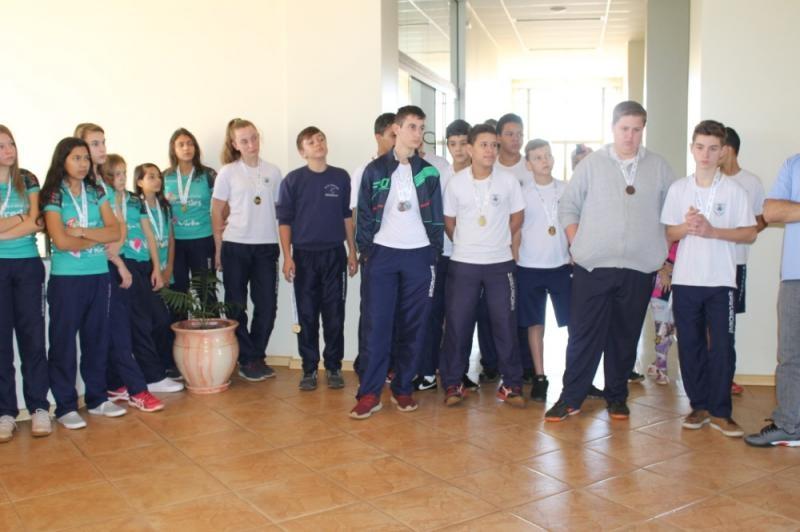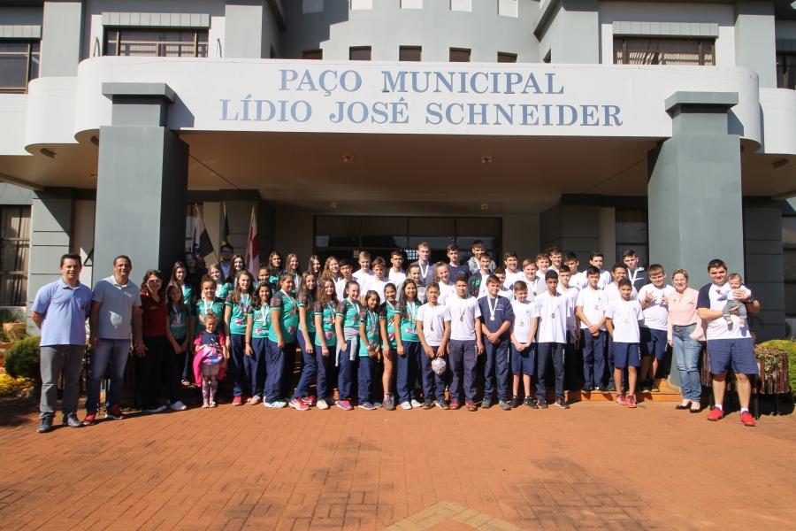 Os atletas das modalidades de handebol masculino e feminino (A e B), xadrez e atletismo estiveram no Paço Municipal na manhã de ontem (24) e foram recepcionados pela Prefeita Cleci Loffi e pelo Secretário de Esporte, Lazer e Turismo Edson Vilar.
