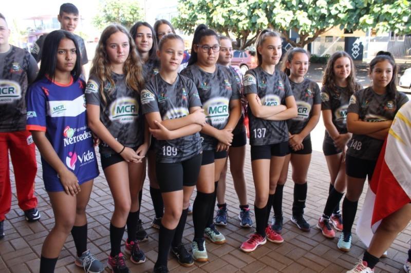 A saída dos alunos ocorreu em frente ao Ginásio Elvio Frey e contou com a presença da Prefeita Cleci Loffi, o Secretário de Esporte Lazer e Turismo Edson Vilar, do Professor Valdecir dos Santos e técnicos.