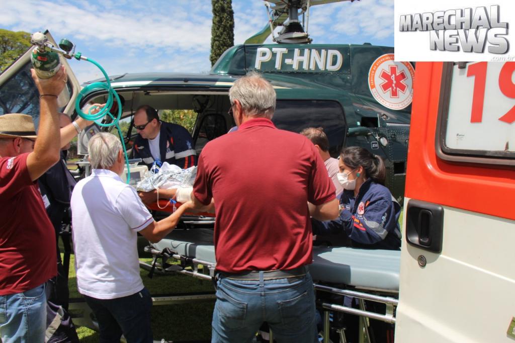 O nova-santa-rosense foi rapidamente atendido pela equipe médica de plantão e devido à gravidade do seu quadro clínico, o helicóptero e a ambulância do Samu foram acionados e Waldir foi transferido para o Bom Jesus em Toledo, o paciente precisou de ôxigênio e no momento da transferência ele não estava consciente.